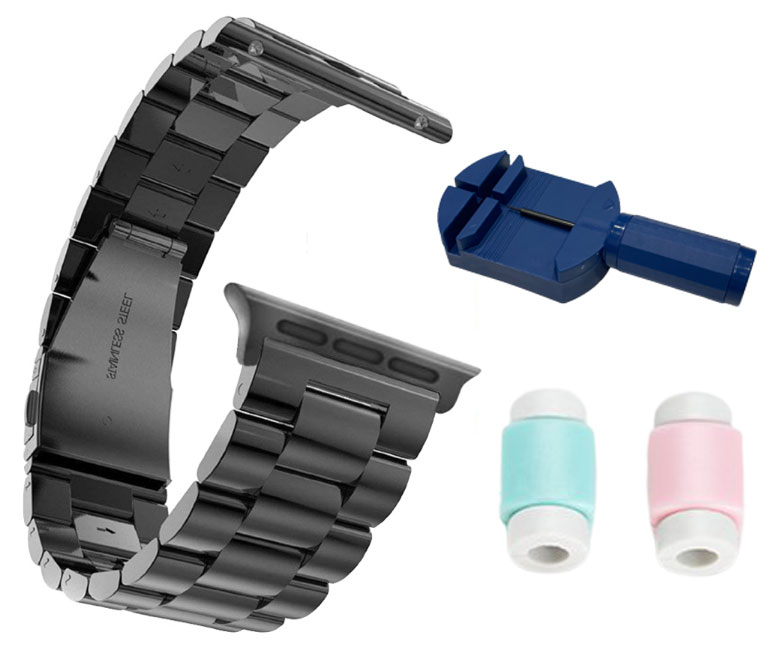 [1+1 당일발송🚀] 애플워치메탈 스트랩 메탈밴드시계줄 링크브레이슬릿 메탈케이스 메탈줄 블랙 42 44mm 호환 / 에어팟케이스 사은품