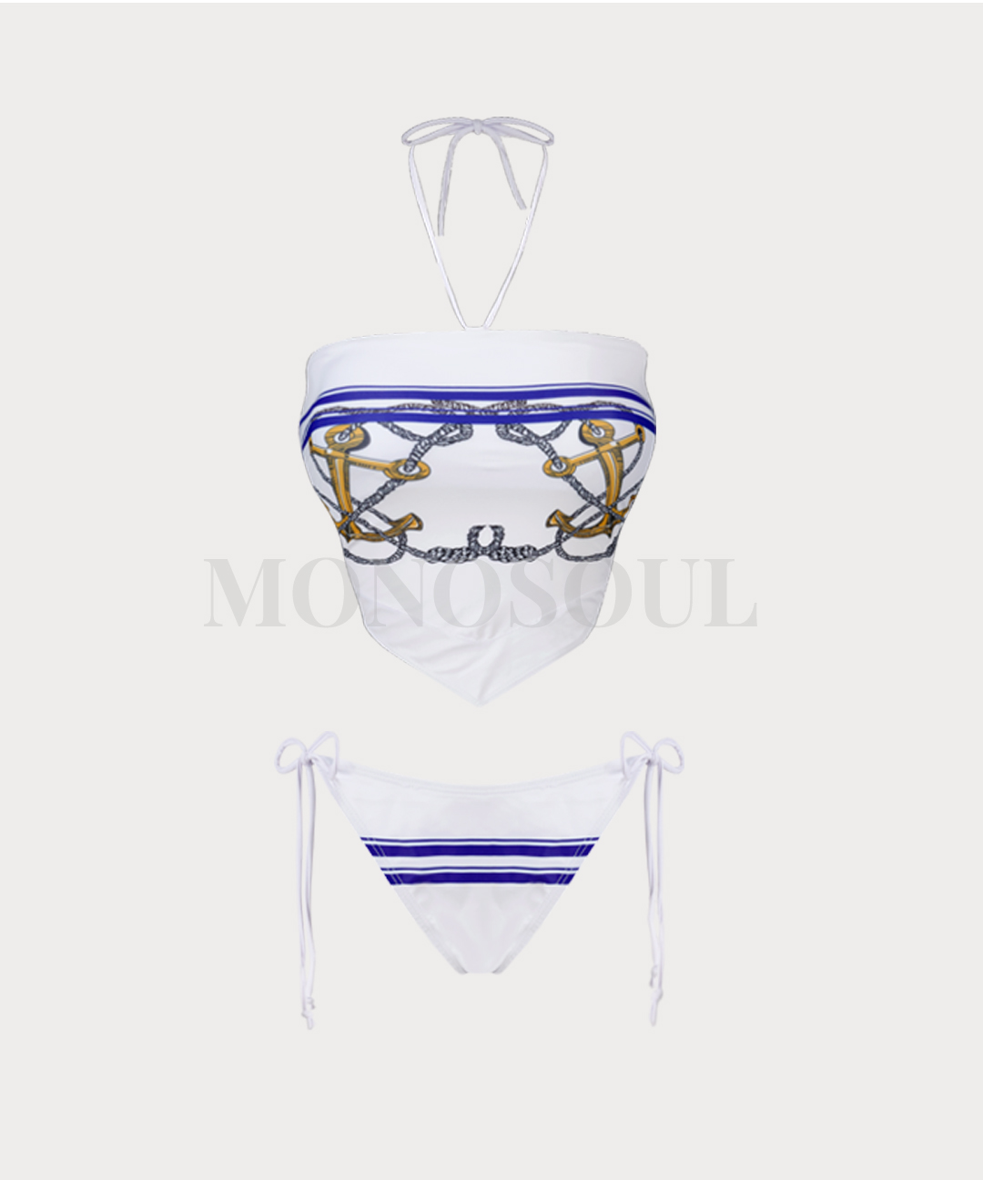 [당일발송] 백 코르셋 홀터 섹시 스카프 마린 탱키니 비키니 수영복