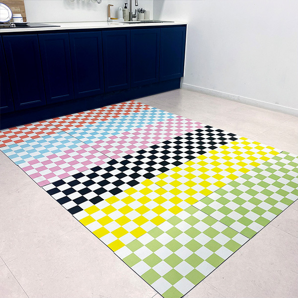 포유 체커 파스텔 소프트 욕실 주방 화장실 규조토 발매트 세트