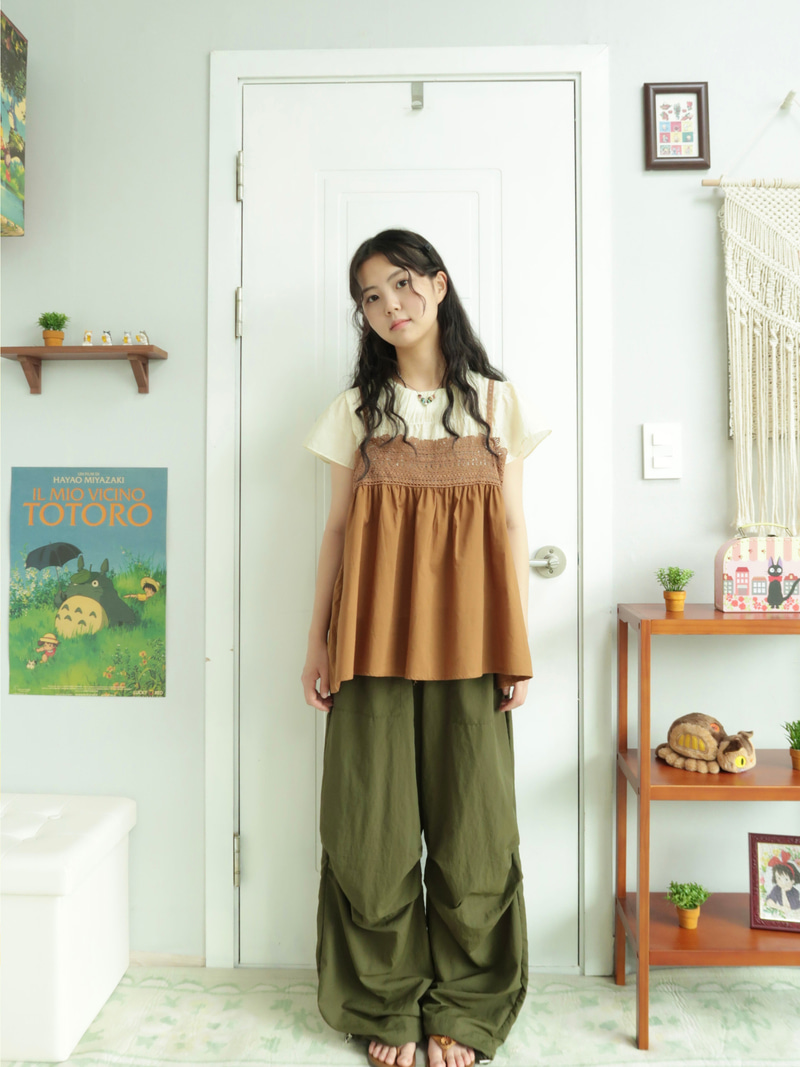 Shirring nylon cargo ( khaki )