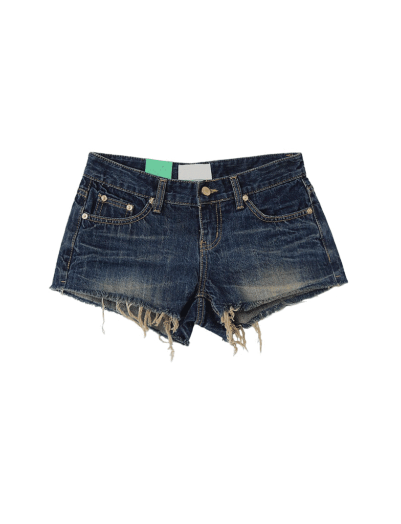 DARK RETRO LOW DENIM CUTTING HOT PANTS 다크 레트로 로우 진청데님 커팅 수술 핫 숏팬츠