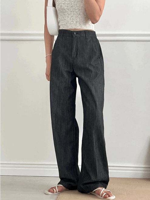 **[S-XXL,쿨링여름데님] 2컬러 이염없이 깔끔한 데니쉬 하이웨스트 뒷밴딩 중청흑청 와이드 팬츠