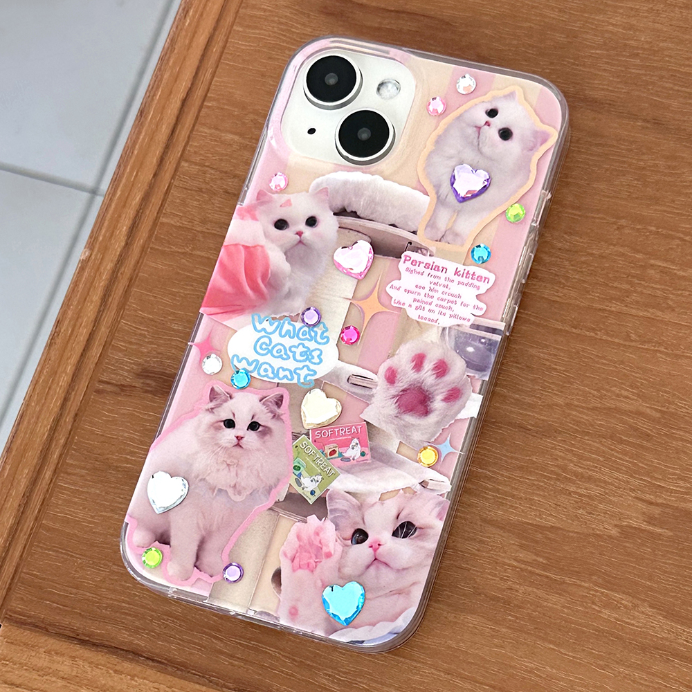 [당일출고/스티커증정] 큐티 화이트 고양이 실사 핑크 스티커 꾸미기 아이폰케이스