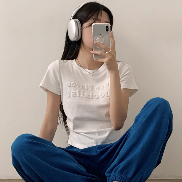 [누적2만장🔥/y2k] 엠보 레터링 사이드 셔링 굴림 크롭 반팔티 (4color) [워터밤/흠뻑쇼]