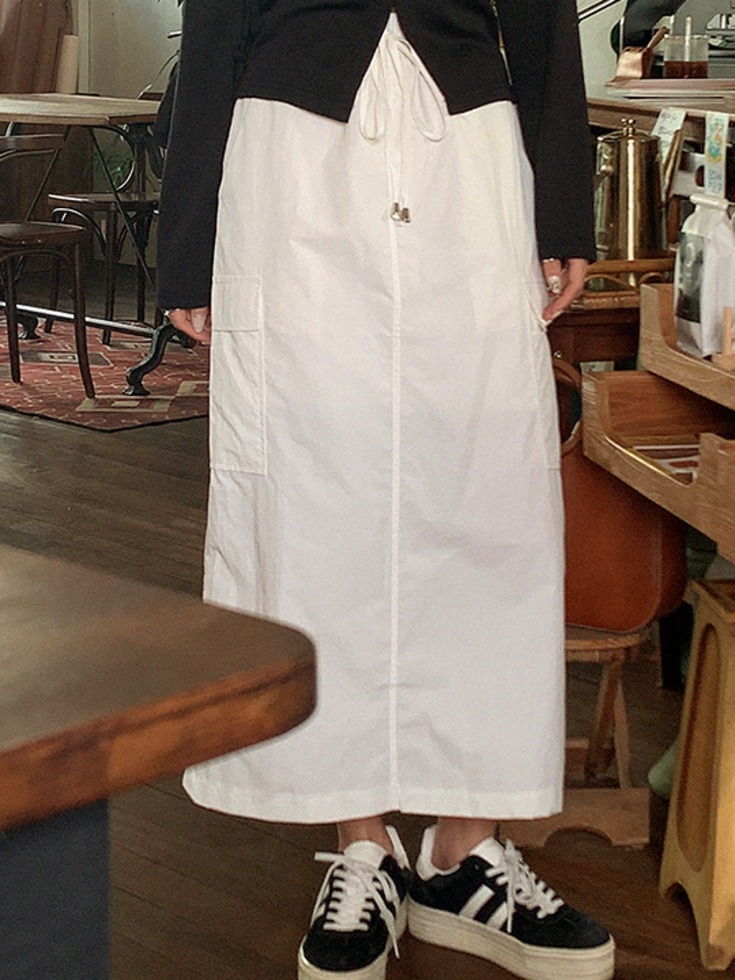 [3천장 돌파✨][무료배송] [25-38] 카니빈 바스락 밴딩 뒷트임 카고 롱 스커트 (봄-가을-데일리룩-데이트룩-캐주얼룩-캠퍼스룩-러블리룩-하객룩-격식룩-출근룩-빅사이즈-38사이즈-자체제작-트임-신축성 )