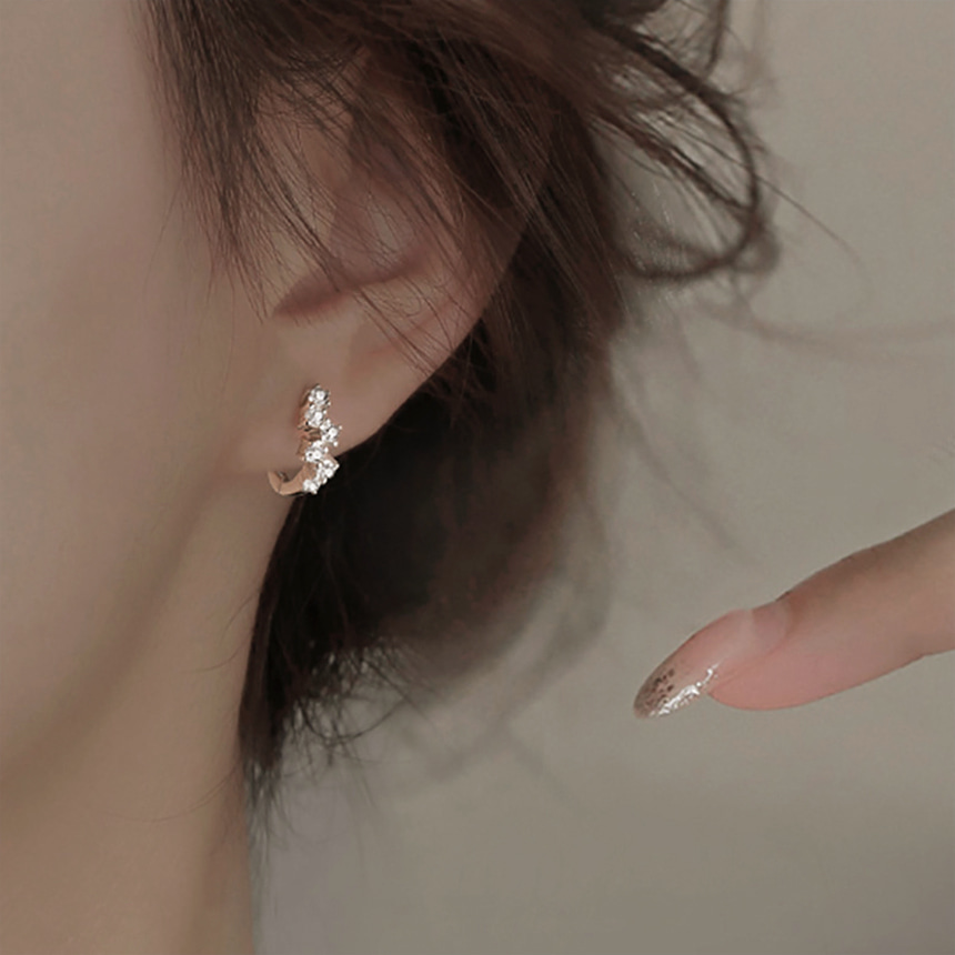 [오늘출발/각인펜증정] 은침 백금도금 크루커큐빅 원터치 귀걸이