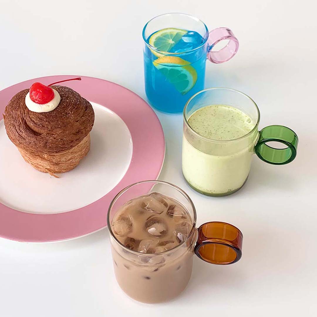 (당일출고)(1+1) 컬러링 손잡이 커피잔 네스프레소 버츄오 홈카페 내열유리컵 300ml 3colors