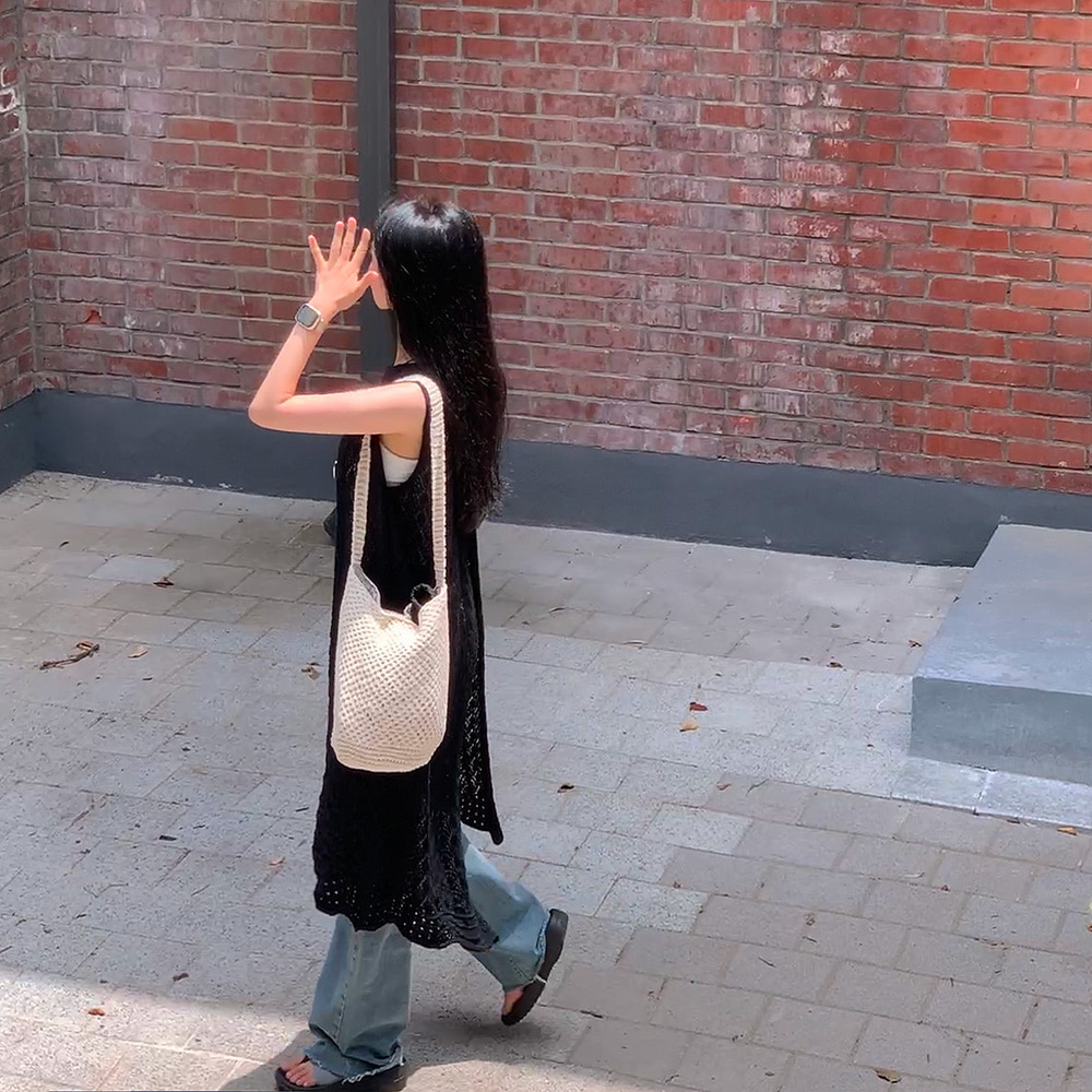 [뒤트임/레이어드템] #휴양지룩으로 딱~, 레이스 시스루 크로쉐 손뜨개 나시 니트 롱 원피스/비치