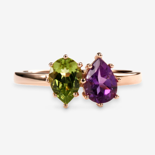 14k,18k 1.23CT 물방울 페리도트&자수정 나폴레옹 반지