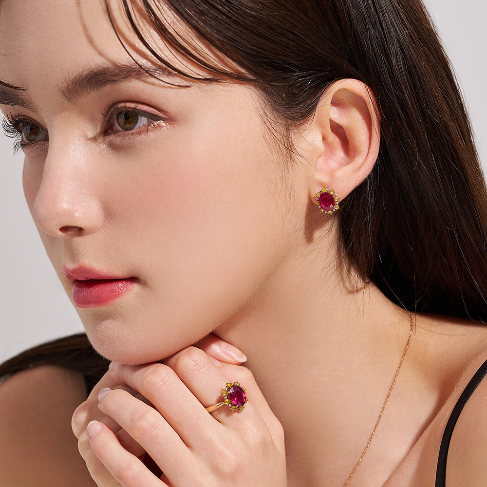 14k,18k 블루밍 천연 루비 귀걸이(다이아몬드)