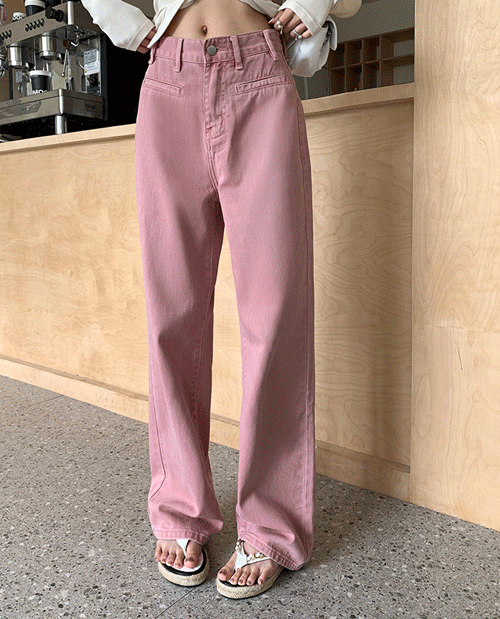여자 립포켓 피그먼트 핑크 워싱 와이드 코튼 팬츠