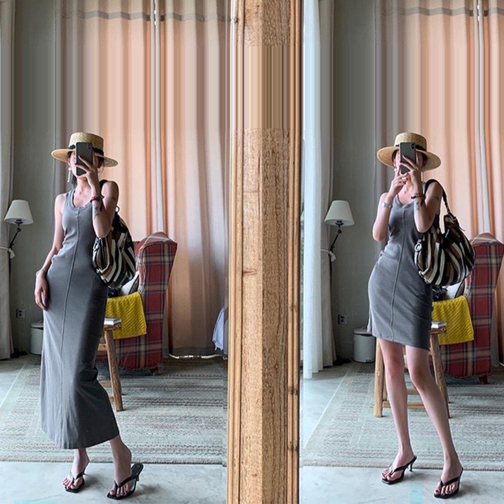 바캉스원피스 u넥 미니 민소매 h라인원피스 롱 끈나시원피스