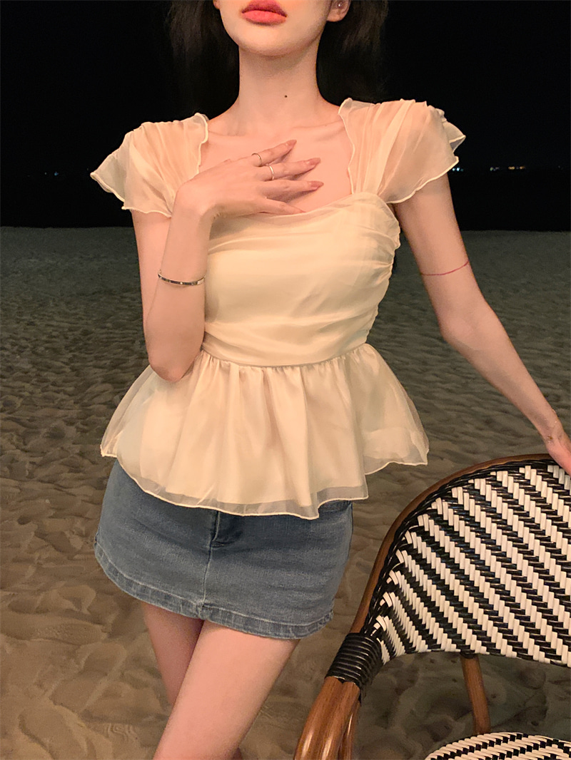 쉬폰 스퀘어넥 민소매 슬림핏 블라우스 상의
