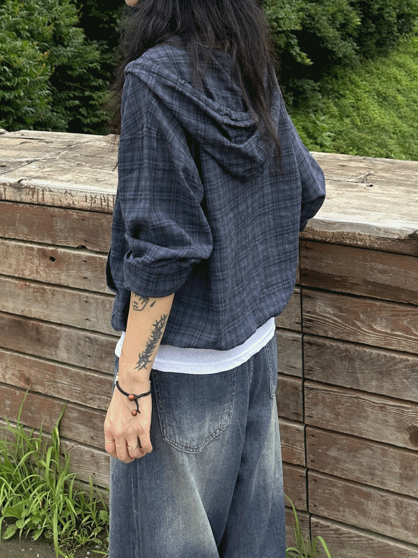 Check anorak hoodie shirts /체크 아노락 후드 셔츠 반집업셔츠 체크셔츠