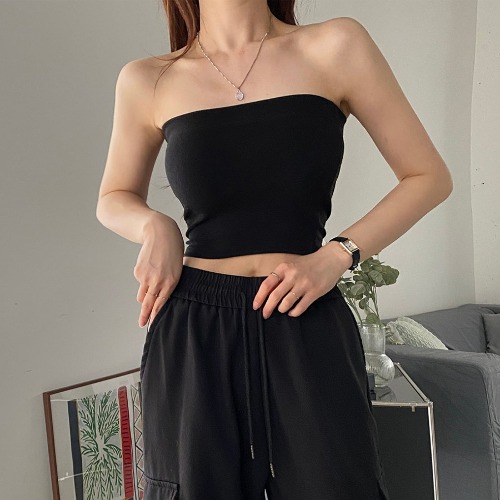 끈없는 오프숄더 탱크탑 튜브탑 나시