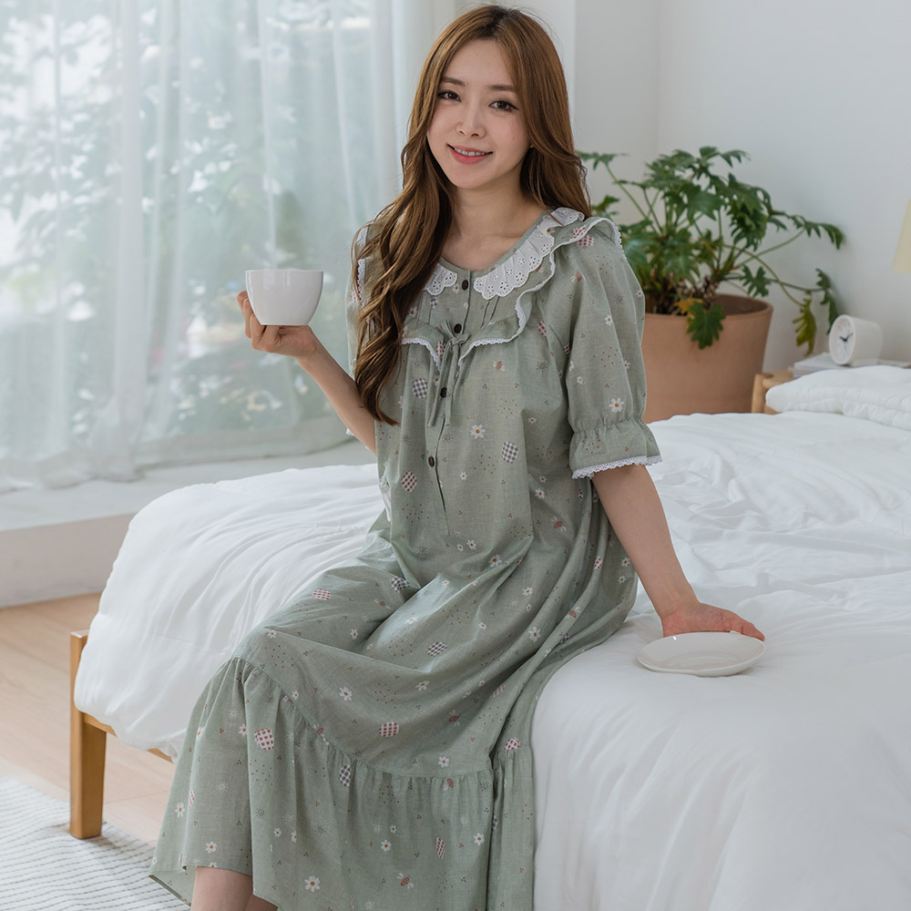 여자 여름원피스 순면잠옷 집에서입는옷 반소매 홈웨어 여성파자마 홈드레스