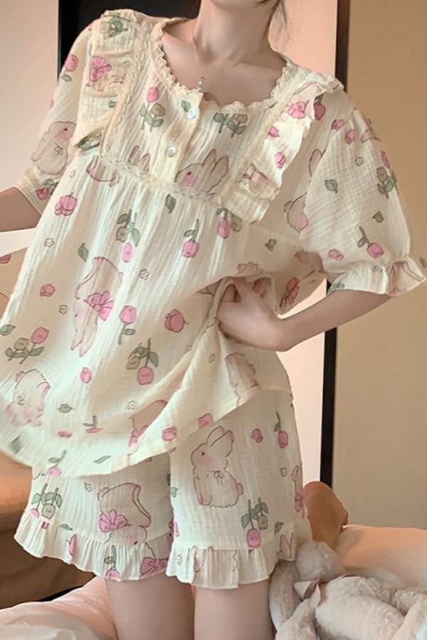 set 토끼 플라워 반팔 탑 반바지 투피스 잠옷 세트
