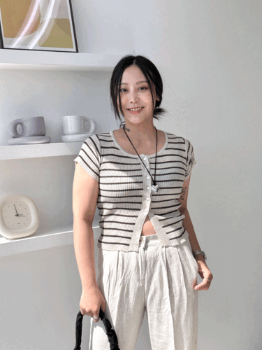 684 글램 트임 단가라 린넨 반팔 가디건[3color]