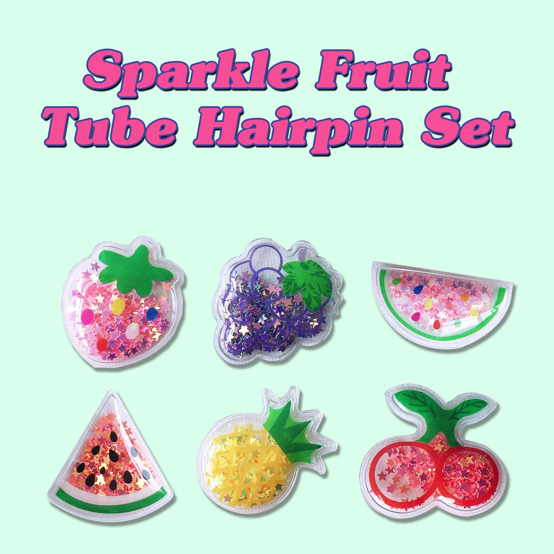 [키틀캐틀] 스파클 프룻 튜브 헤어핀 세트 강아지 악세서리 머리핀 집게 머리삔