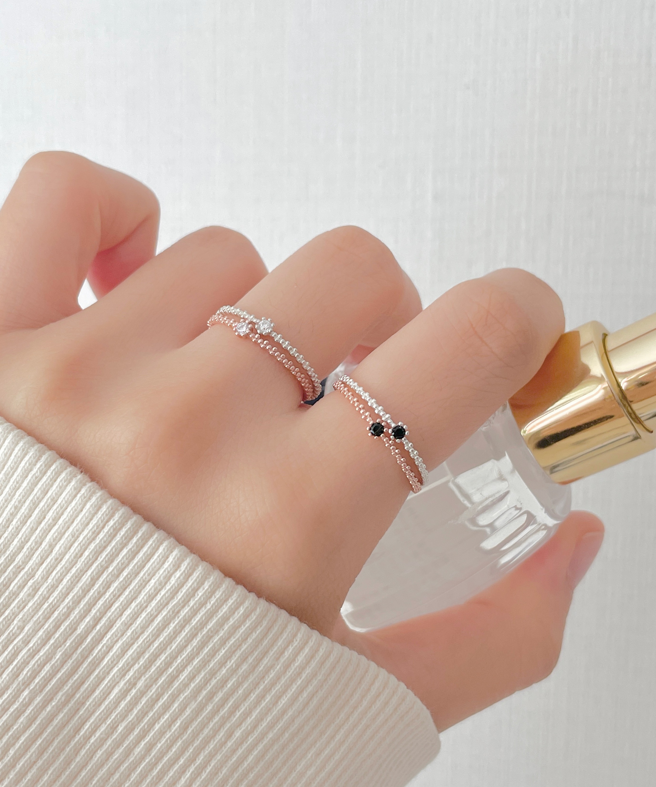 925실버 블랙 화이트 원큐빅 은볼 레이스 도트 레이어드 반지 - 실버 로즈골드