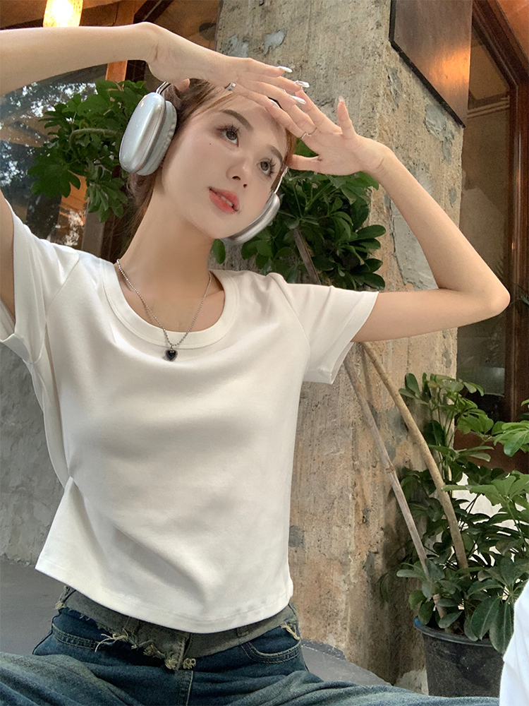 핏이 예쁜 쫀쫀 U넥 반팔 티셔츠