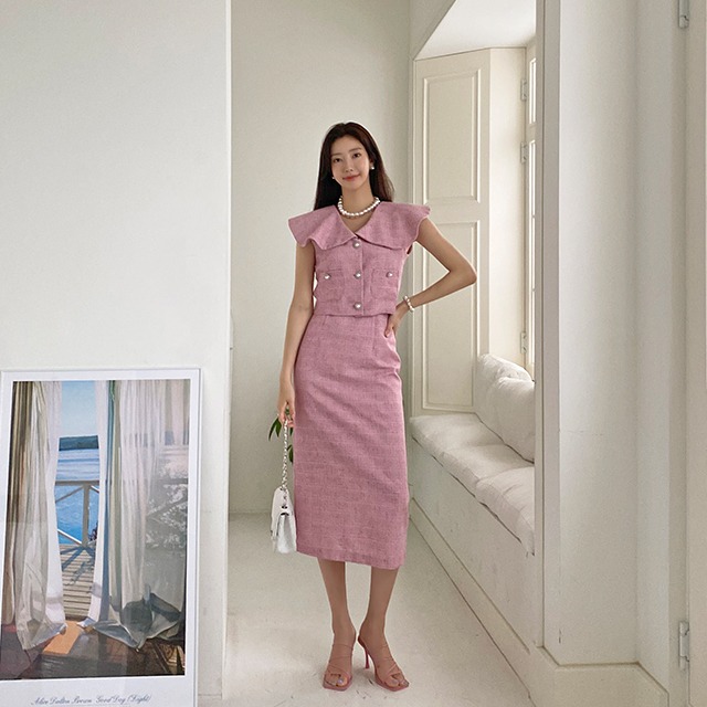 둥근 세라 진주 트위드 투피스 세트