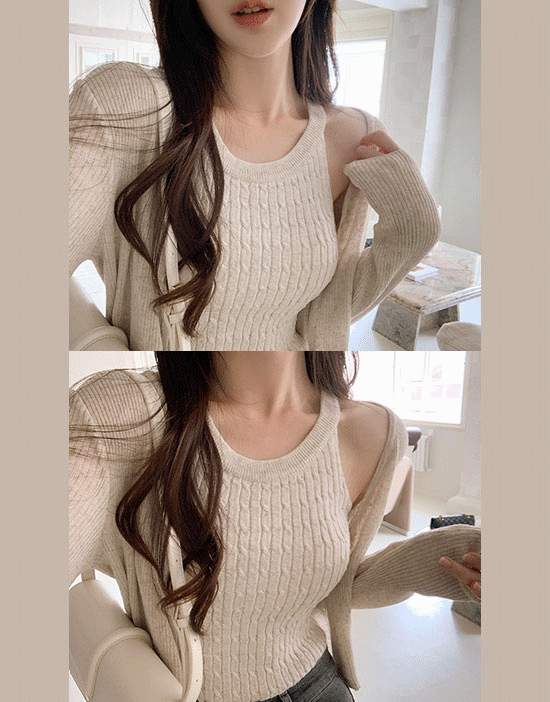 미르네 니트 슬리브리스(홀터넥/꽈배기/나시/여리글램핏/데일리룩)