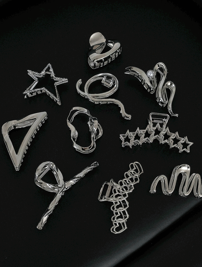 [1+랜덤증정] Y2K 실버 메탈 숱많이 반묶음 집게핀 10종 모음