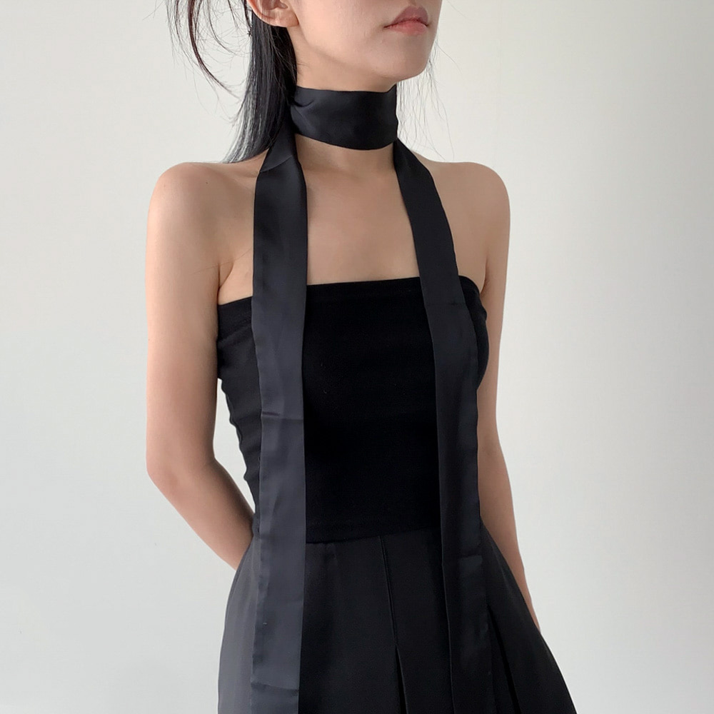 [실크/미니멀룩] 롱앤 슬림 베이직 블랙 타이 얇은 머플러 스카프 2color