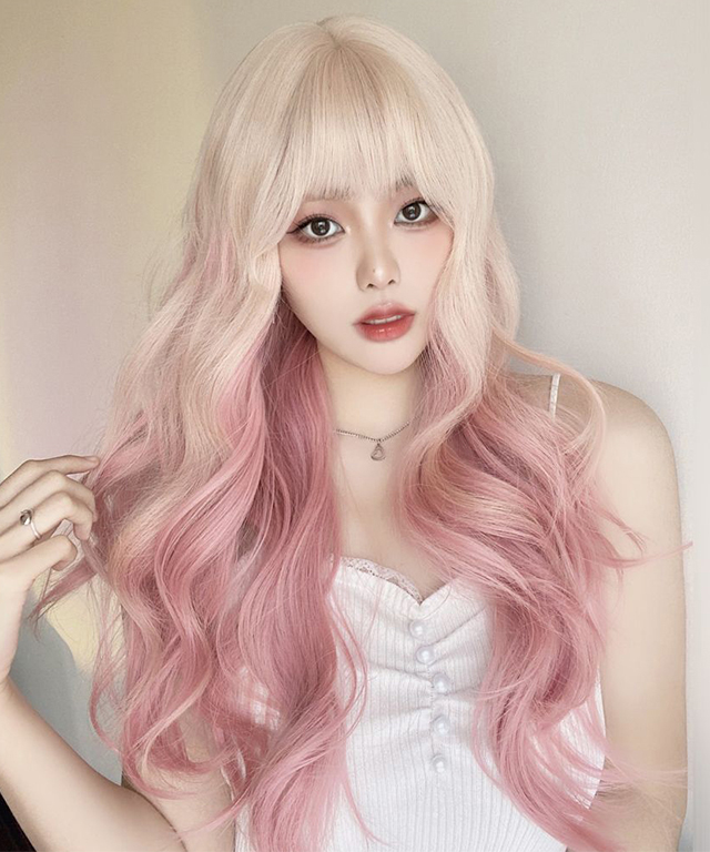 플로리엔느 백금발 투톤 웨이브 펌 긴머리 가발 65cm + 가발액세서리 3종 셋트