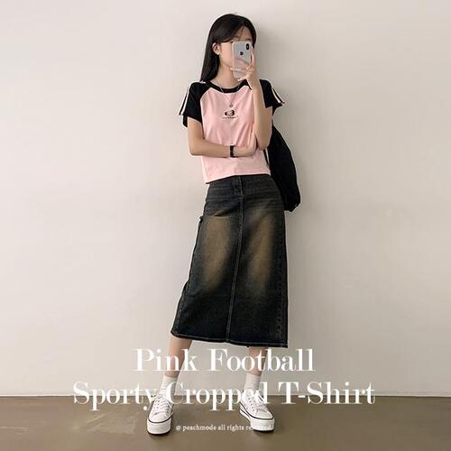 [블록코어/유니폼] 핑크 풋볼 스포티 세미크롭 반팔 티셔츠 (1color)
