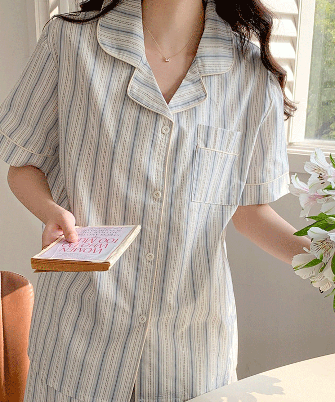 [직진🚀] 레이크 스트라이프 반팔 상하세트 파자마 잠옷