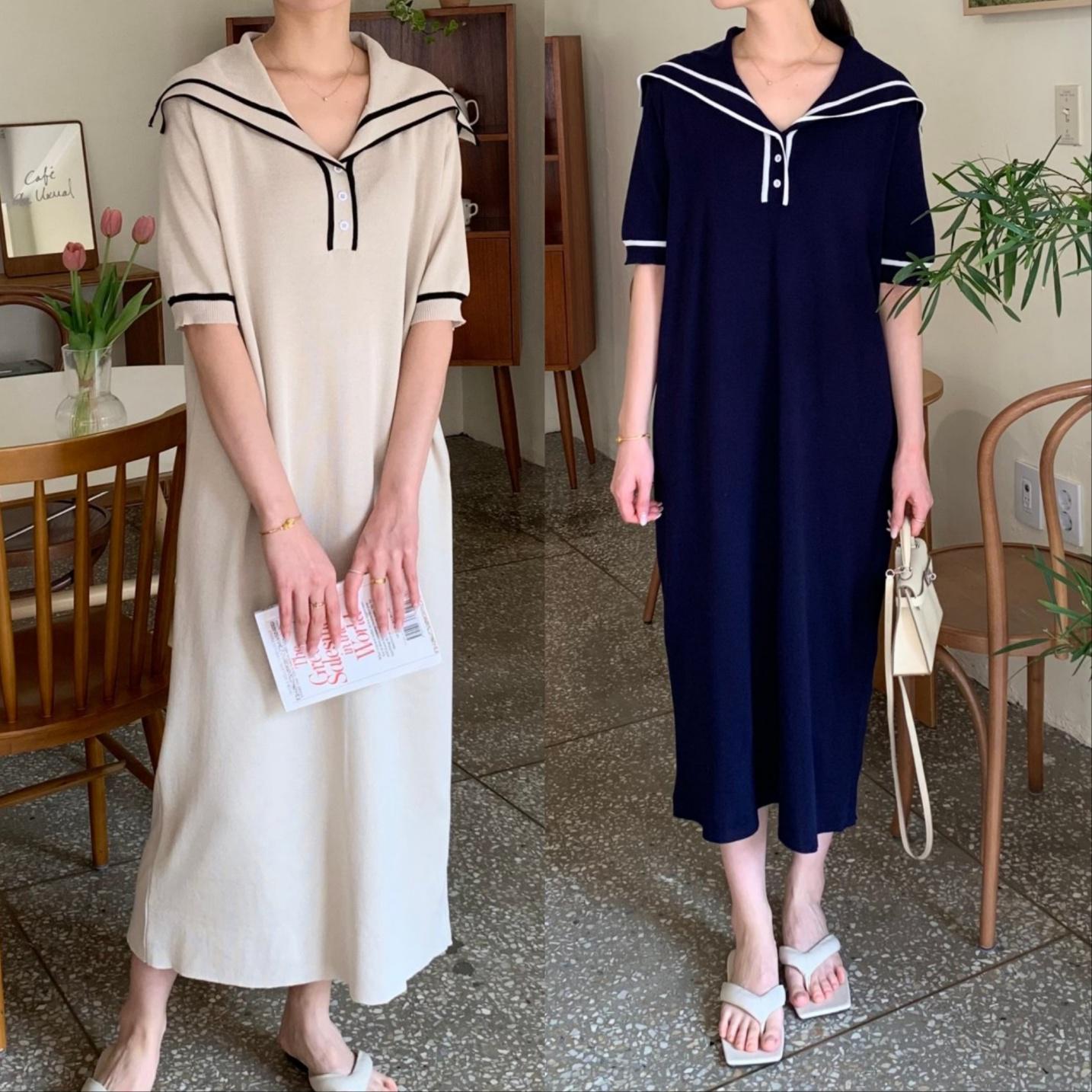빅카라 세일러원피스 루즈핏 여름 반팔 니트원피스 정장원피스 결혼식복장 엄마옷