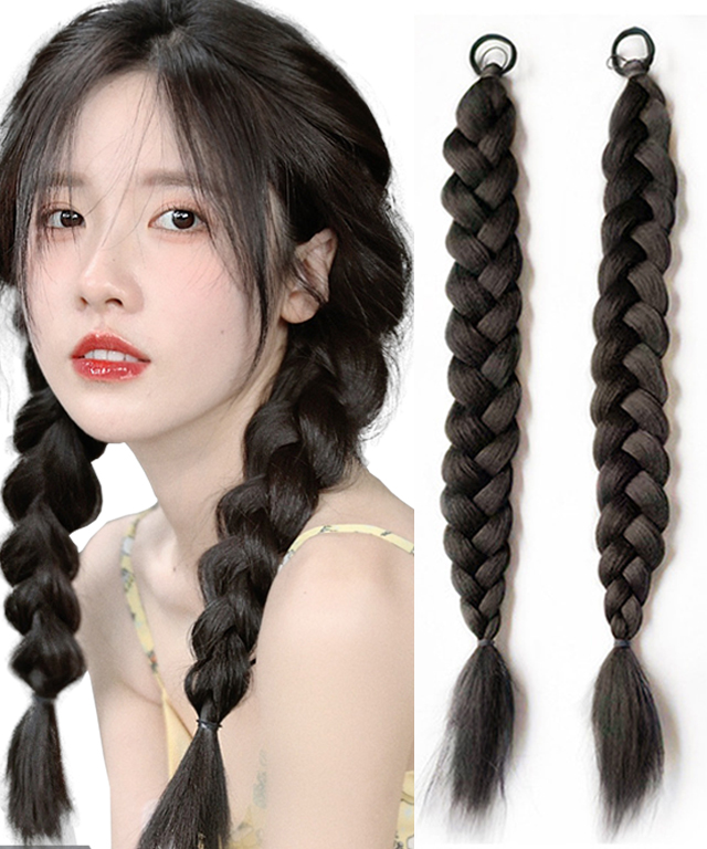 땋은머리 트윈테일 링 헤어피스 2개 - 1셋트