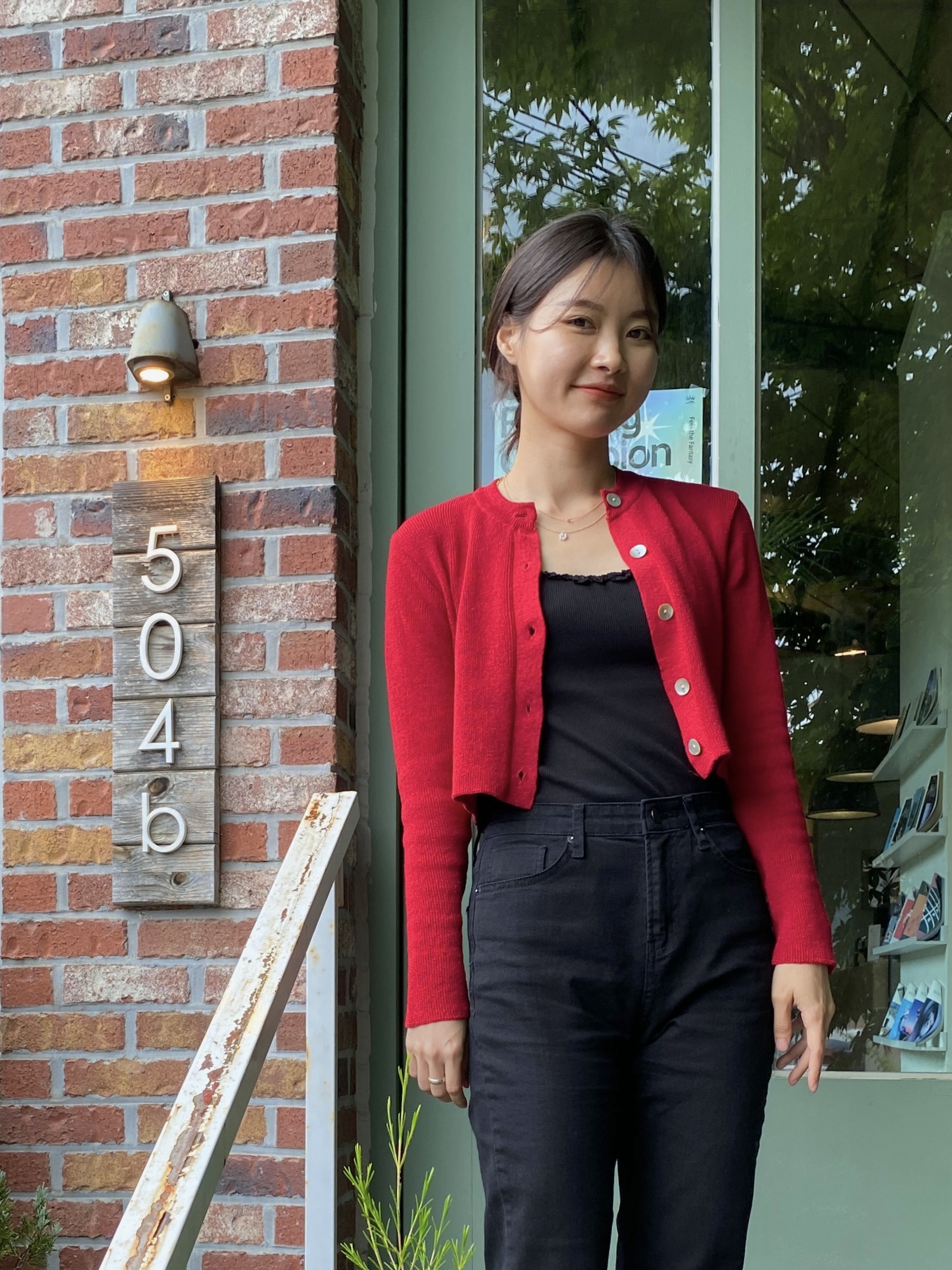 어스 자개단추 라운드넥 크롭 여리핏 린넨 가디건