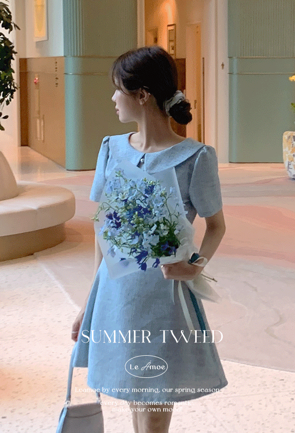 [🌿하객룩/여름원피스] [MADE] 파우더 트위드 미니 원피스