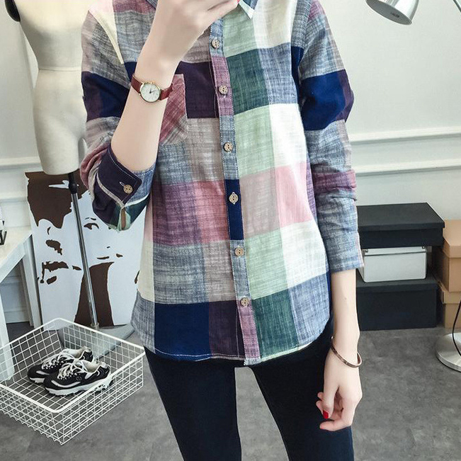 스타일아유 여성 가을 데일리 캐주얼 베이직 체크 긴팔 셔츠 남방 출근룩 오피스룩