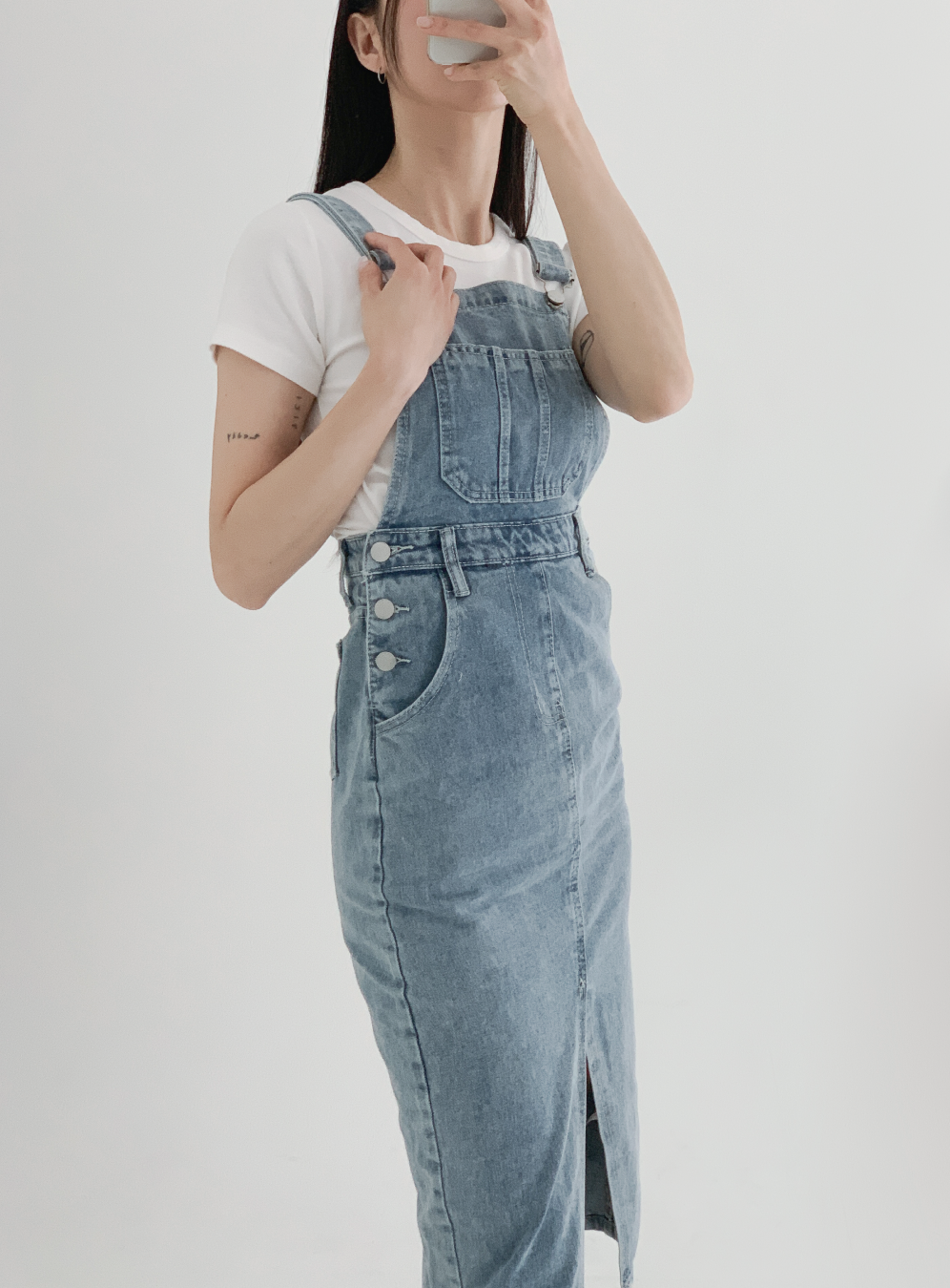 [주문폭주/멜빵조립완료] 데님 스트랩 스커트 롱 미디원피스 멜빵 청치마 연청 진청 블랙 흑청 에이라인 트임 허리강조 멜빵치마 사계절룩 여행룩 휴양지 봄 여름 간절기 프로필 촬영