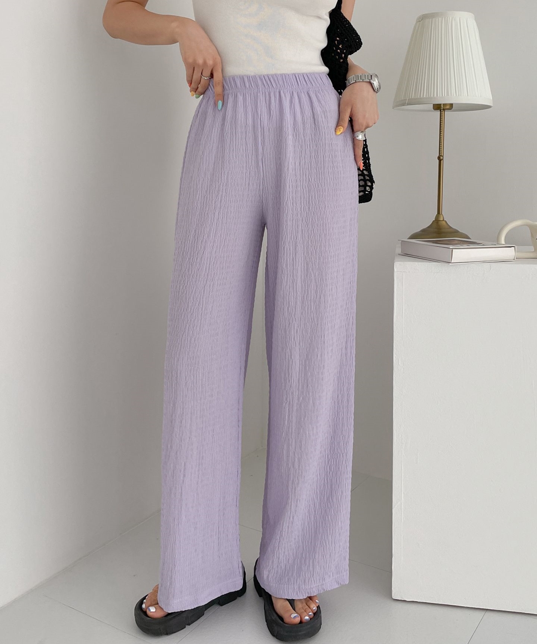 오유 쭈글 와이드 팬츠[블랙/크림/연보라]