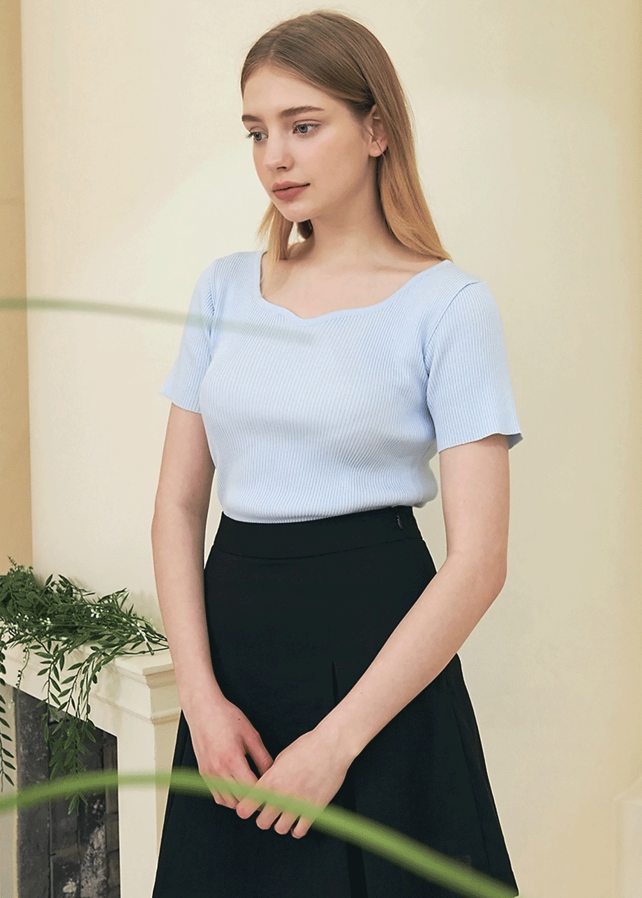 [44-120] Blossom Heart-Boat neck Knit 블로썸 하트 보트넥 니트 (여름-하객룩-격식룩-베이직-데일리룩-데이트룩-출근룩-오피스룩-마실룩-하트넥-세미크롭-골지니트-자체제작)