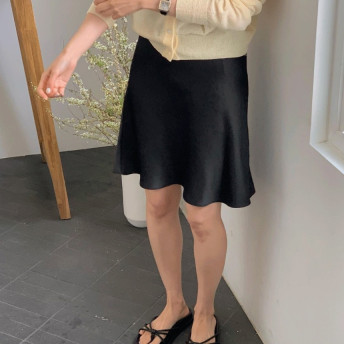 [M당일] jinsim 진심 다이애나 스커트 여름 미디 실키 스커트 허리밴딩 플레어 새틴 블랙 sk (2colors)