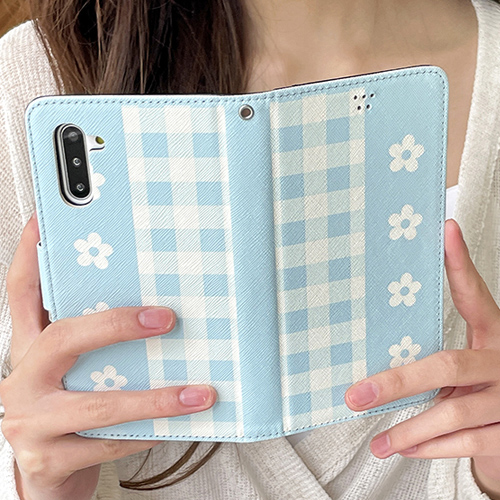 H160-1 플라워 체크 무늬 카드수납 다이어리케이스 지갑 휴대폰 핸드폰 삼성 갤럭시 S23 22 21 20FE 10 9 8 A40 50 90 30 노트 플러스 울트라