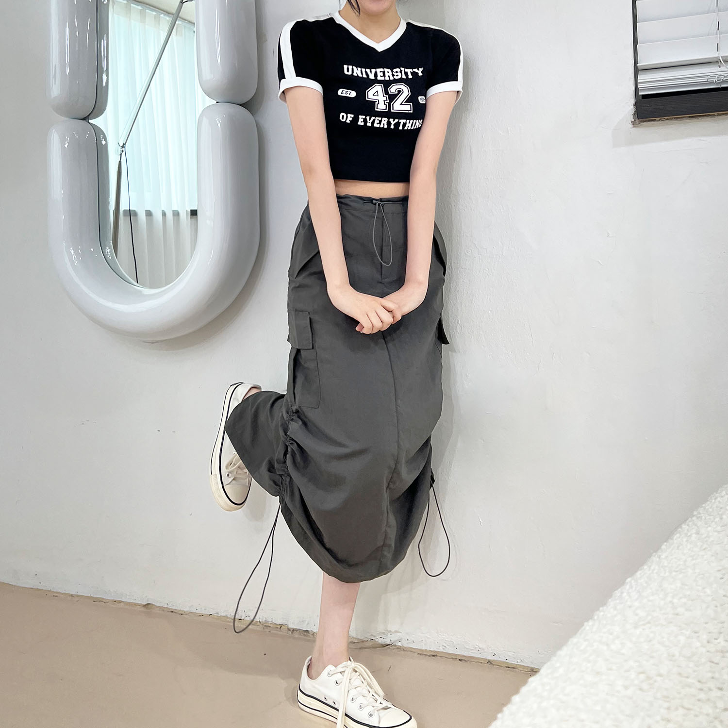 [스트링조절!/비침없음!!] 모에 셔링 카고 포켓 트임 롱 스커트