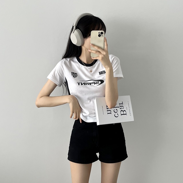 스프린트 배색 크롭 반팔 블록코어 y2k 힙 스트릿