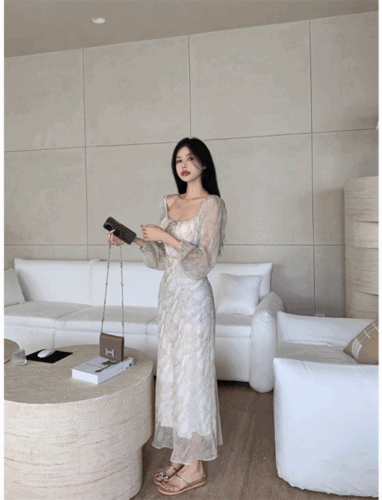 밴딩 오프 원숄더 플라워 롱원피스 스퀘어넥 리본 퍼프소매 쉬폰 플라워원피스 잘록허리 주름 빈티지 꽃무늬 총드레스 나염 a라인 매쉬 20대 30대 하객룩 데이트룩