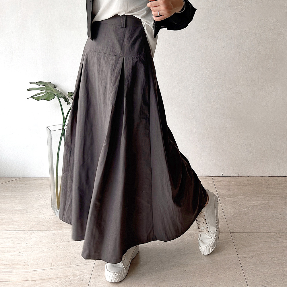 네모엔룩 바스락맥시핀턱 벨트고리 장식 앞주름 캐주얼 A라인 맥시 롱 스커트