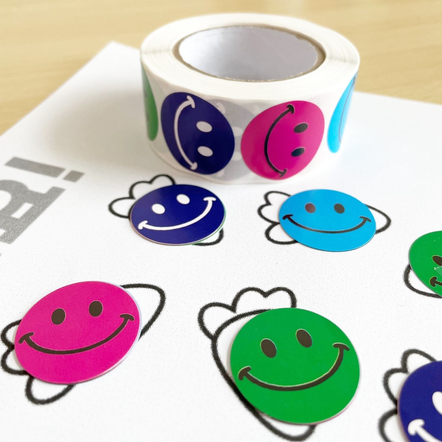 씰링 포장 스마일 이모티콘 롤스티커 500p 칭찬 실링 포장스티커