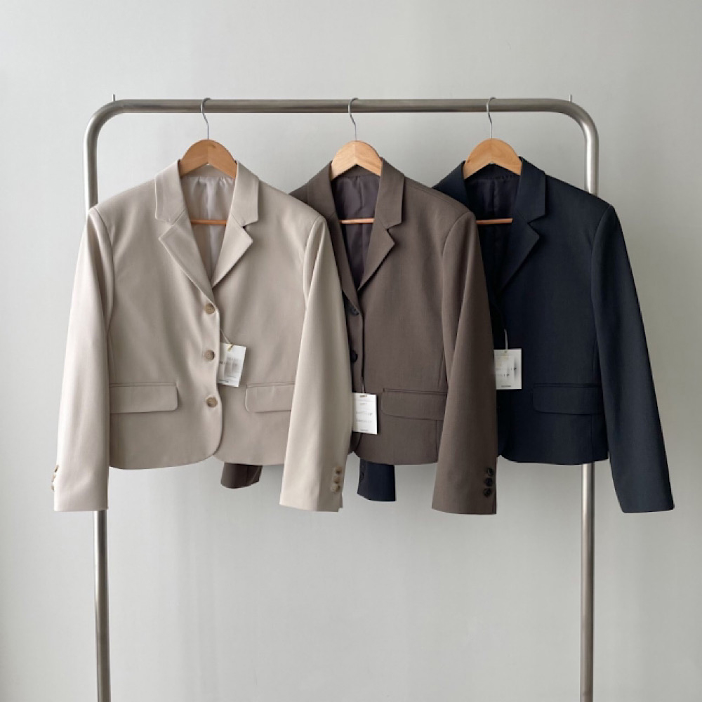 크롭 카라 싱글 예쁜 가을 간절기 여자 아우터 심플 결혼식 직장인 하객룩 단추 라인 자켓