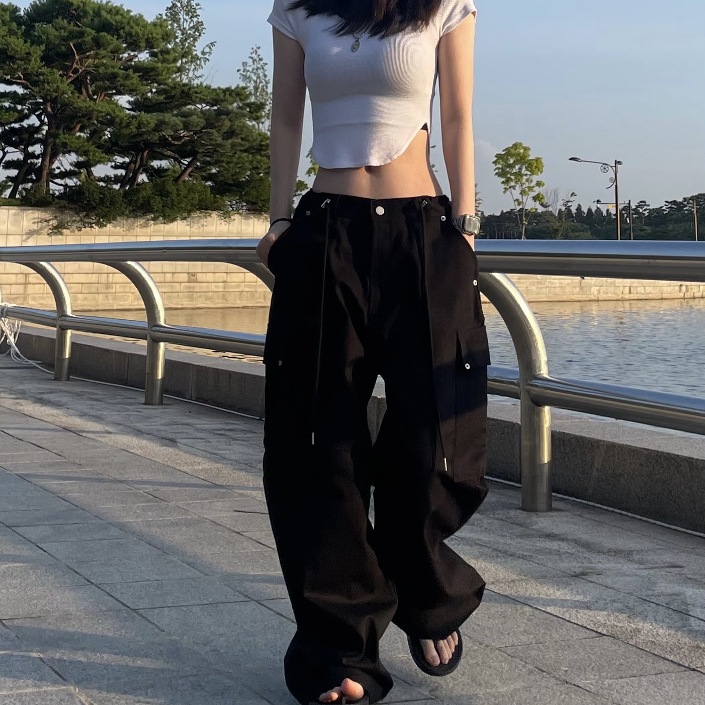 (UNISEX)리뱃 허리스트링 카고 팬츠(2color)