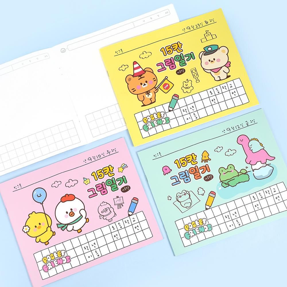 쪼꼬미친구들 15칸 그림 일기 초등 유치원 어린이 일기장 공책 노트 그림일기장 단체 선물